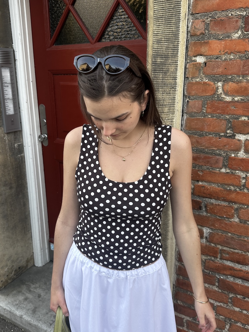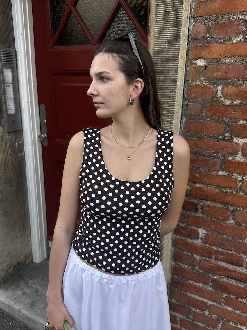 Our Polka top is playful, flattering, and made for sunshine. With its classic neckline and easy silhouette, it’s a go-to piece that never tries too hard. The polka dots add a touch of charm, while the clean fit keeps it modern.